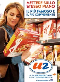Parte oggi il terzo flight della nuova campagna pubblicitaria istituzionale del brand U2 Supermercato (Gruppo Finiper), il supermercato controcorrente, che nel corso del 2013 sarà pianificata su mezzi di comunicazione ad elevata visibilità, con l'obiettivo di presidiare in modo puntuale il territorio di presenza. Da segnalare, in particolare, affissioni nelle aree geografiche di Piemonte, Lombardia ed Emilia Romagna, e passaggi stampa sui principali quotidiani. I claim dei nove flight previsti, firmati dall’agenzia Melis Melis, sono dedicati a promuovere i valori dell’insegna. Protagonisti del terzo lancio sono la marca privata U!Confronta e Risparmia e la modalità espositiva con la quale viene posizionata sugli scaffali. Il claim, che recita “Mettere sullo stesso piano il più famoso e il più conveniente” mira a focalizzare l’attenzione sulle modalità di esposizione dei prodotti della linea U! Confronta e Risparmia nei punti vendita.
