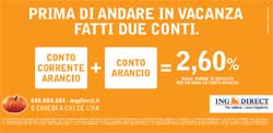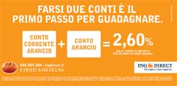 L’iniziativa ha l’obiettivo di fare conoscere i vantaggi dell’abbinata del conto corrente di ING Direct, completo di tutti i principali servizi per gestire la liquidità, con il conto deposito, strumento da sempre pensato per la remunerazione dei risparmi. Inoltre comunicherà l’ISC, Indicatore Sintetico di Costo previsto da Banca d’Italia, che per Conto Corrente Arancio è pari a zero per tutti i profili.