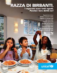 direttore comunicazione Unicef. La campagna, on air dall'8 al 20 novembre, giorno in cui ricorre il 20esimo anniversario della Convenzione Internazionale sui diritti dell'infanzia e dell'adolescenza, è pianificata da Mediaedge:Cia su quotidiani, settimanali, in radio con spot da 15" e da 30", e sull'outdoor tv. La colonna sonora dello spot 'Io come tu' è ad opera degli About Wyane, gruppo emergente romano. Lo spot è visibile su YouTube.