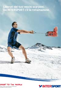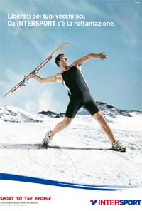 L'agenzia firma la campagna stampa in due soggetti a supporto dell'attività promozionale di rottamazione di sci e scarponi usati realizzata dall'insegna. Per l’agenzia hanno lavorato Stefano Baronti, art director, e Massimiliano Pancaldi, copywriter, con la direzione creativa di Massimo Valeri e Mirella Valentini.