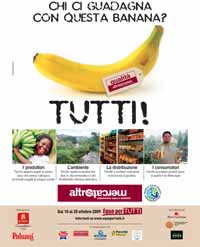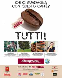 l’ampiezza del messaggio, l’agenzia ha scelto la strada più chiara ed esplicita possibile: una domanda e una risposta. La domanda parla chiaramente di guadagno, inteso sicuramente come arricchimento in senso lato ma anche economico; la risposta è la sintesi della mission Altromercato e si esprime semplicemente con la parola TUTTI. A seguire si nominano tutte le fasi della filiera Altromercato e, nella campagna stampa, con l’ausilio di quattro immagini, si spiega perché tutte ricavino dei benefici da questa cooperazione. Più che una semplice campagna è stato creato un format che si presterà a comunicare non solo l’accurata scelta delle materie prime ma anche la superiorità qualitativa dei singoli prodotti. E in futuro potrà essere declinabile ad altri anelli della filiera Altromercato, come i produttori, l’ambiente e a iniziative ed eventi successivi. Sono già in preparazione nuovi soggetti.