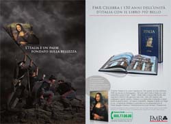 E’ partita il 12 settembre la campagna di comunicazione ideata dall'agenzia per il lancio del volume 'Italia' realizzato in tiratura limitata dalla casa editrice d’arte FMR. La campagna è stata declinata su stampa, pianificata sui principali periodici di attualità e informazione, sul web e in tv attraverso telepromozioni dedicate con la partecipazione di Gerry Scotti.
