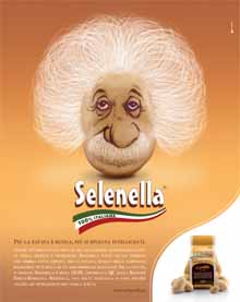 Una bella patata Selenella in primo piano. Pochi segni grafici ed eccola antropomorfizzata in un’altrettanto bella icona del XX secolo: Albert Einstein. Il legame è innocente ma non casuale, basti pensare al claim della più famosa patata italiana: “Più la patata è buona, più si diventa intelligenti.” Albert avrebbe sorriso. L’ironia non gli mancava.Selenella è in campagna a novembre e dicembre sulle testate più lette della stampa periodica: Donna Moderna, Chi, Sorrisi e Canzoni TV. Nello stesso periodo Selenella è on air su RadioRai con 2 spot di 15” centrati sull’etichettatura d’origine italiana 100%.
