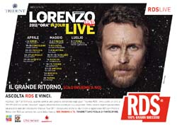 A distanza di tre anni Lorenzo Jovanotti torna a regalare ai suoi fans le sue canzoni e la sua energia, dal vivo. RDS è la radio ufficiale del nuovo 'ORA Live Tour 2011'.Da lunedì 7 a domenica 13 marzo, durante gli spazi 'Tournée RDS' e in contemporanea alla messa in onda di un brano dell’artista, basterà inviare un sms al 392.999.2000 con scritto 'JOVANOTTI' seguito dalla località per cui si intende giocare, per poter essere tra i vincitori dei biglietti dei concerti. E’ possibile partecipare al concorso anche su www.rds.it.