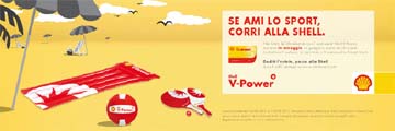 A fronte dell’acquisto dei carburanti Shell V-Power, i clienti potranno ottenere in omaggio un gadget dal kit da spiaggia. La promozione viene lanciata con una campagna radio, stampa e web