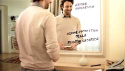 Per sottolineare il duplice benefit l’agenzia è riuscita a raccontare una situazione di vita vissuta: un semplice specchio nel quale uno dei due protagonisti ritrova il prodotto e anche l’efficacia. Il key visual dello spot di 20” che sarà in onda dal 18 luglio è riportato anche sui materiali POP.