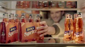 Il nuovo film, proseguimento naturale della comunicazione Aperol, ha come protagonista il barman, che dal bar sulla spiaggia all’ora del tramonto, viene portato dalla gente direttamente in una casa durante l’ora dell’aperitivo. Energia e vitalità, insieme al piacere di stare in compagnia e gustare un Aperol Spritz perfettamente preparato e già pronto da gustarsi in compagnia sono gli ingredienti della nuova comunicazione.