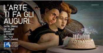 La campagna comunica la nuova iniziativa del Ministero per i Beni e le Attività Culturali, 'L'arte ti fa gli auguri', che dal primo gennaio e per tutto il 2011, offrirà a tutti cittadini dell'Unione Europea un ingresso gratuito in qualunque luogo dell'arte statale, nel giorno del proprio compleanno.