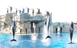 a proposta di intrattenimento dal forte livello qualitativo. Tra le numerose attrazioni Adventure Island, il paradiso dei giochi, un playground dedicato ai bambini e ai loro genitori, e la Laguna dei Delfini dove Ulisse e il cucciolo delfino Zeus, insieme ai loro compagni, danno vita a uno show mozzafiato con acrobati e tuffatori. Nel Mulino del gufo vivono alcuni degli uccelli rapaci delle specie più famose, curati dalle sapienti mani di esperti falconieri. Pianeta Terra invece è un percorso spettacolare attraverso il tempo, dal big bang ai primordi della vita; mentre Hippocampus è la mostra vivente di cavallucci marini più grande al mondo.