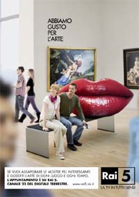 La Direzione Comunicazione Rai ha messo on-air una campagna di rilancio di Rai 5 pianificata su tv, stampa, affissione e web. Rai 5 è un canale entertainment visibile sul DT focalizzato su 5 generi: il cinema, la moda, i viaggi, l’arte, e la musica. La campagna si rivolge a un target vasto ed eterogeneo, che comprende gli appassionati dei vari generi ma anche il pubblico delle reti generaliste che non trova spazi televisivi per coltivare le sue passioni. Partendo dal posizionamento di rete “La TV in tutti sensi”, la campagna mette in scena, in maniera surreale e