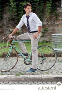 Continua la collaborazione, ormai giunta al quinto anno consecutivo, tra a.testoni, azienda di calzature e accessori che da più di 80 anni è testimonial nel mondo del lusso made in Italy, e The Ad Store Italia. La campagna S/S 2011 riprende il main theme della campagna precedente, l’eco chic, che viene interpretato e sviluppato attraverso due nuovi concetti: urban mobility e bleisure (trend il cui nome deriva da 'business' e 'leisure'). Gli spostamenti in una grande città - a piedi o con i mezzi sostenibili - diventano un’espressione dello stile di vita e della propria identità. Roma è la città che meglio rappresenta i temi della campagna filtrati attraverso l’identity a.testoni: luxury heritage, ben conscia del proprio glorioso passato è proiettata verso un altrettanto radioso futuro.