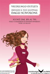 La nuova campagna autunno/inverno 2009/10 di Vicolungo Outlets è pianificata su stampa quotidiana e periodica, affissione e radio. Planning & Buying sono a cura della Divisione Creative Media di Attila&Co.