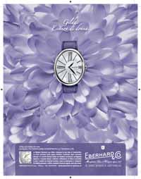Eberhard & Co., storica maison dell’orologeria fortemente orientata verso il mondo maschile dedica una nuova collezione, Gilda, al mondo femminile. Un passo importante con l'obiettivo di celebrare e interpretare l’essenza della donna del nostro tempo, elegante e intraprendente al tempo stesso. A sostegno del lancio in comunicazione è stata pianificata un importante presenza sulla stampa periodica femminile con una campagna in più soggetti e uno spot già on air sul sito web della maison. L’annuncio, realizzato da Paola Giulietti e Andrea Verri, parla il linguaggio dei fiori. L’orologio è visto al centro di una sontuosa corolla di petali, la cui morbidezza e raffinatezza richiama le linee e i preziosi materiali protagonisti della collezione. L’unicità di ogni modello è resa dalle differenti sfumature di di ogni fiore.