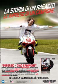 Un tributo speciale per ricordare Marco Simoncelli, il campione scomparso lo scorso 23 ottobre sul circuito malese di Sepang. Da domani, 6 dicembre, in esclusiva con La Gazzetta dello Sport, sarà in edicola il dodicesimo e ultimo dvd della collana 'Top 10 Motomondiale' interamente dedicato alle imprese di 'SuperSic'.A supporto dell’iniziativa editoriale, l’agenzia Now Available ha firmato un nuovo annuncio stampa che propone nel visual l’immagine vincente ed esuberante del giovane pilota romagnolo. Un talento puro capace di emozionare il grande pubblico sia in gara sia a bordo pista, grazie alla sua straordinaria voglia di vincere e alla sua contagiosa simpatia.
