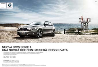 Sarà on air in questi giorni su stampa periodica la campagna di lancio in anteprima della Nuova BMW Serie 1. La creatività, è stata realizzata dal copy Enrico Pasquino e dall’art Giovanni Greco, sotto la direzione creativa esecutiva di Francesco Bozza e la supervisione di Bruno Vohwinkel e Daniele Pancetti.