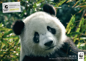 Durante la presentazione sono state anticipate le campagne stampa che parlano di panda in lacrime che ‘Sono come noi, il panda piange perché l’uomo ha tagliato le foreste di bambù’ e del fatto che ‘Rimane poco tempo, quanto tempo diamo al panda? Certo non quanto quello della clessidra, il tempo del panda non deve finire’ oltre a ricordare a tutti che ‘Il pianeta è la nostra casa’. L’orso bianco che letteralmente si sta sciogliendo sulla banchisa polare invece lancia l’appello ‘Per favore spegnete il riscaldamento’ . Lo spot radiofonico scritto e cantato dai bambini recita ‘Se il WWF sosterrai flora e fauna salverai….’ . Nello spot televisivo una famiglia con due bambini intenta a fare colazione viene sfrattata da un orso bianco, a cui l’uomo ha sottratto l’habitat e qui il monito è ‘ E se gli orsi bianchi lo facessero a te? Non distruggiamo la loro casa’.