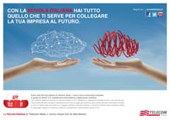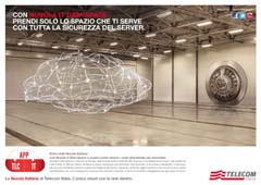 Un annuncio istituzionale, nel quale il messaggio è stato reso affiancando alla Nuvola Italiana sulla mano, una serie di fili rossi che formano una seconda nuvola, come rappresentazione della rete di Telecom Italia. Il titolo a supporto dell’idea è: “La Nuvola Italiana. L’unico cloud con la leggerezza di una nuvola e la solidità della rete Telecom Italia.”
