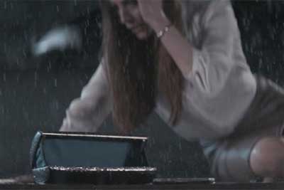 La donna, ripresa in una sicura e stilosa camminata sotto la pioggia, cade a terrà a causa della rottura di uno stiletto della scarpa perdendo la borsetta che si apre rovesciando il contenuto. Quando sta per raccoglierla una voce fuori campo recita : "Style or substance? We believe you can have both." Lo spot finisce con la line "Engineered beautiful".