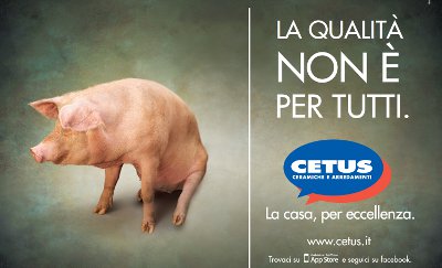 Come solo un brand di alta qualità può permettersi di fare, la creatività esce completamente dai canoni tradizionali della comunicazione di questo settore, chiamando simbolicamente in causa chi non potrebbe mai apprezzare l'eccellenza Cetus: due soggetti diversi nel visual, una mosca e un maiale, entrambi accanto all'imponente headline "La qualità non è per tutti", con marchio Cetus e pay off "La casa, per eccellenza." a chiudere entrambi gli annunci.