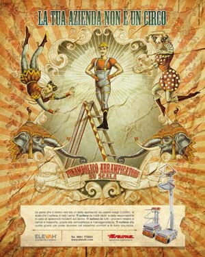 Il key visual richiama il circo vintage anni '20 che raffigura un operaio nelle vesti di un funambolico arrampicatore in cima a una tradizionale e insicura scala a pioli. Lo scopo è, ovviamente, quello di sottolineare l'importanza della sicurezza all'interno di un'azienda e di sensibilizzare il target sui reali benefici derivanti dall'adozione di una scala elettrica per i lavori quotidiani.