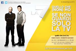 La campagna La7 'Se non guardi solo la tv' è on air da oggi, lunedì 7 maggio, con il nuovo flight dedicato a 'Quello che (non) ho', il programma di Fabio Fazio e Roberto Saviano che andrà in onda in prima serata il 14, 15 e16 maggio su La7.