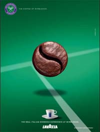 L'espresso italiano escende sui campi da tennis nella campagna cross media ideata da Armando Testa per comunicare l'accordo triennale tra Lavazza e Wimbledon. I mezzi coinvolti sono tv, stampa, internet affissione, promocard e altri materiali Btl.