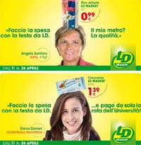 LD Market si propone come la scelta di spesa per tutti: ogni soggetto recita una didascalia che riporta nome, cognome, professione e stato sociale del testimonial, una strategia che ben si esprime nella declinazione radio della campagna pubblicitaria.