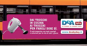 Da oggi, 22 aprile, fino al 5 maggio 2015, parte la prima campagna outdoor dinamica di DeAbyDay.it, il web magazine femminile di De Agostini Editore, pianificata su 215 mezzi pubblici di Milano e Roma. La campagna introduce la nuova tag line 'Le donne ci sanno fare' e si rivolge al target principale di DeAbyDay.it, ovvero la donna curiosa, creativa e soprattutto 'capace di fare', che sul web magazine può trovare spunti, consigli e soluzioni 'how to' per la cura di sé, della propria femminilità, della famiglia e della casa.