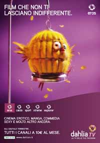 E’ on air in questi giorni, nelle principali città italiane, la nuova campagna dedicata al lancio di Dahlia Eros, il canale tematico all’interno del bouquet di canali digitali di Dahlia TV. Il soggetto è pianificato su affissioni statiche e dinamiche a livello nazionale da Mediaedge Cia con la firma creativa di Leagas Delaney.