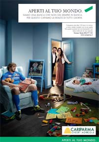 E’ partita in questi giorni la nuova campagna stampa istituzionale, declinata anche per il materiale below the line, che l'agenzia ha ideato e realizzato per il Gruppo Cariparma Crédit Agricole, dopo il recente debutto televisivo che vede come testimonial le due star del rugby. La direzione creativa esecutiva è di Stefano Campora e Stefano Rosselli.