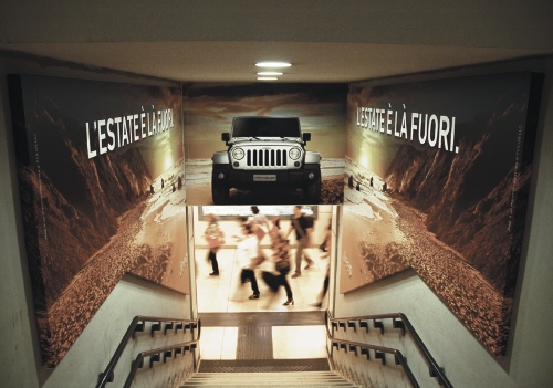 Grazie a scale, pannelli, affissioni, la stazione Garibaldi fino al 31 luglio permetterà così ai frequentatori di avere l’impressione di viaggiare e vivere l’avventura che solo il marchio Jeep può dare.