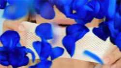 Freschi e soffici petali blu, icone del marchio, testimoniano la nuova ed esclusiva traspirabilità dell’assorbente. La simpatica protagonista lo dimostra soffiando giocosa attraverso il filtrante traforato per farli 'svolazzare' attorno a sé.