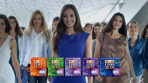 La protagonista è una bella donna che, mentre cammina insieme a un gruppo di altre donne, decide di cambiare direzione: proprio come il nuovo Lines Seta Asciutto Continuo. Parlando in camera, la donna illustra con il supporto delle immagini 3D la differenza tra gli altri ultra e il nuovo Lines Seta. Solo il nuovo Lines Seta, infatti, ha l’esclusiva tecnologia a Strati Attivi che blocca il liquido lontano dalla pelle. Dopo la dimostrazione, anche le altre donne decidono di cambiare direzione e si voltano sorridenti in camera affiancando la protagonista sulla nuova strada dell’Asciutto Continuo.