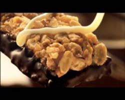 La macchina da presa si avvicina alla barretta, dove una squisita colata di cioccolato bianco scende morbida a decorarne la superficie. Una voce fuoricampo conclude lo spot e invita all’assaggio: 'E dall’unione dei cereali, del cioccolato Belga e del cioccolato bianco, nascono i nuovi snack Extra. Provali!'.