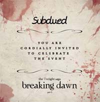 Subdued sigla l’uscita dell’atteso 'Breaking Dawn part 1' con una pianificazione mirata. Dal 16 novembre all’8 dicembre in 40 sale di tutta Italia il brand manderà in onda il suo spot pubblicitario prima del nuovo sequi film Twilight Saga.Prodotto dalla Italian International Pictures, in 30” Subdued comunica al suo target lo spirito del marchio e i trend della nuova collezione con una sequenza di immagini piacevoli e accattivanti. Il brano scelto è Dance! Dance! Dance! dei romani The Singers, pezzo fresco e orecchiabile.