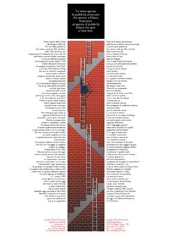 La sede newyorkese di Lorenzo Marini & Associati è al numero 20 della ventiduesima strada, nel cuore del Flatiron District, quartiere dell’advertising, dell’avanguardia e del design. Lorenzo Marini & Associati New York opererà in continua collaborazione con la sede milanese, in un costante scambio per ampliare gli orizzonti della comunicazione, delle idee e dei propri servizi, ma ha già all’attivo un organico composto da figure professionali italiane e americane. (Nella foto l'annuncio stampa apparso a dicembre su alcuni quotidiani nazionali).