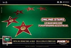 Nell’annuncio, gli assi del poker vengono presentati come delle star. L'headline recite: "Le mani migliori ti porteranno alle stelle."