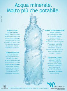 La Federazione Italiana delle Industrie delle Acque Minerali Naturali ha affidato a Lowe Pirella Fronzoni il compito di ideare e realizzare una comunicazione per promuovere un’informazione trasparente e in grado di diffondere correttamente le qualità dell’acqua minerale rispetto quella del rubinetto. L'iniziativa sembra una replica alla campagna di Coop Italia, che invita all'utilizzo dell'acqua del rubinetto all'interno di una più ampia campagna consumerista (vedi notizia correlata).Il lavoro dell’agenzia si è concretizzato in un annuncio istituzionale che pone al centro il consumatore, valorizzando la sua scelta consapevole. La firma ‘Da un’informazione trasparente nascono scelte libere.’ sintetizza perfettamente il concetto poi amplificato dalla creatività.