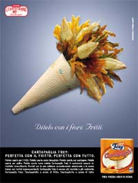 La campagna di Cartapaglia Foxy firmata Lowe Pirella Fronzoni si articola in due soggetti che, attraverso un utilizzo non convenzionale della carta, mettono in luce il plus di prodotto, ossia la straordinaria capacità di assorbire l’unto, rendendola perfetta per ogni tipo di fritto.Nel primo soggetto, la carta diventa l’involucro di un bouquet di fiori davvero speciale. Si tratta infatti di fiori di zucca, rigorosamente fritti. Il titolo recita: 'Ditelo con i fiori. Fritti'.