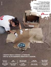 La campagna istituzionale di Medici Senza Frontiere è pianificata in televisione, stampa e radio. Previste anche attività di Direct Marketing e un sito Internet. Con la direzione creativa di Mauro Manieri e Umberto Casagrande, hanno lavorato l'art Alessandro Bedeschi, il copy Massimo Ambrosini. Fotografo Sven Torfinn. La casa di produzione è Cineteam Roma.