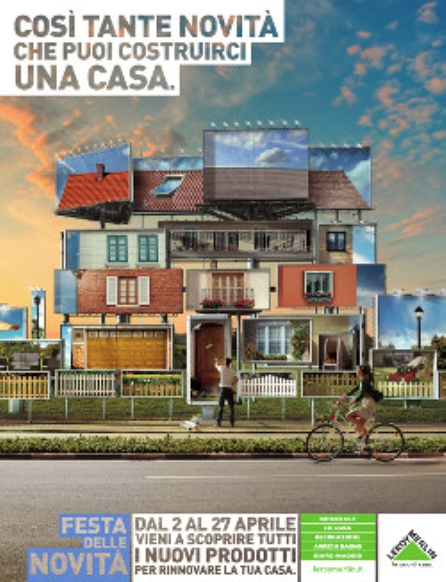Una promessa che nel key visual si traduce in una serie di affissioni in cui le novità vengono pubblicizzate singolarmente, ma poste una vicino all’altra restituiscono visivamente una vera e propria casa, mentre nel soggetto radio viene raccontata da una giovane coppia che sta ristrutturando il proprio appartamento, in cui la donna, come in una sorta di Truman Show, non può fare a meno di nominare i nuovi prodotti con un’intonazione tipicamente pubblicitaria.