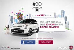 Dopo la partenza della campagna per il lancio della nuova Fiat 500L, avvenuta lo scorso 16 settembre, Maxus avvia una seconda fase di comunicazione legata al nuovo modello di casa Fiat, che andrà ad affiancare l’importante attività di pianificazione già intrapresa su tutti i media (tv generalista, canali satellitari e digitali, carta stampata, radio, ooh, portali web e tv on demand).In questa seconda fase prenderà il via il progetto '30 after 30', con l’obiettivo di coinvolgere lo stesso target di riferimento della campagna (adulti tra i 30 e i 50 anni) attraverso attività interattive sviluppate attraverso il web. Il claim della campagna, 'crescere è cool' (creatività di Leo Burnett), è alla base del progetto che verrà declinato da Maxus giocando sul "rito di passaggio" normalmente considerato un incubo dal target in questione, ovvero la lista delle cose da fare prima dei 30.