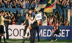 fianco al capitano Javier Zanetti, che conclude lo spot con un festoso e travolgente abbraccio. La casa di produzione è Mercurio Cinematografica, la post produzione è stata curata da EDI Effetti Digitali.