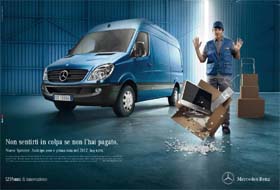 La campagna stampa, affissione e radio vede protagonista l'offerta Mercedes Benz per l'acquisto del veicolo commerciale Sprinter euro 5 che non prevede il pagamento di alcun anticipo e la prima rata prevista nel 2012. Firmano la creatività, sotto la direzione di Sara Portello e Laura Pecoraro, l’art Fabrizio Fiucci e il copy Luca Brunelli.