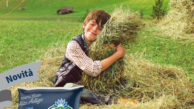 Protagonista del nuovo soggetto di campagna è la prima mozzarella Fior di Latte con Latte Fieno proveniente da mucche dell’Alto Adige, nutrite a erba fresca, cereali e fieno. Certificato dal