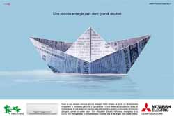 Il secondo soggetto, pianificato su Gazzetta dello Sport e sul Corriere della Sera, dove si alternerà al soggetto istituzionale, è dedicato ai partner di Mitsubishi Electric. Qui la barchetta, simbolo di Kirigamine, è ancora la protagonista dell’annuncio ma ‘porta’ le foto degli Installatori Qualificati Partner.