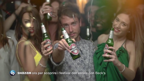 Beck's, una delle aziende più importanti per la produzione e commercializzazione della birra in Italia, ha scelto di utilizzare la soluzione Shazam for TV per i propri spot audio e video durante l’ Arezzo Wave che si è tenuto dal 17 al 21 luglio ad Arezzo e il Gusto Dopa Al Sole che si svolgerà il 12-13-14 Agosto a Torre Dell’Orso - Melendugno (LE). Per i due eventi musicali, Mobvious - spin off di HiMedia Group e concessionaria in esclusiva di Shazam per l’Italia - ha realizzato una campagna second screen, integrando le strategie del digital advertising con gli eventi sul territorio e cancellando sempre di più il netto confine tra online e offline.