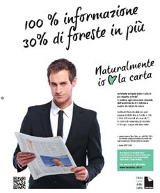 Uno dei messaggi che sarà diffuso dalle principali testate quotidiane, periodiche e specializzate è 100% INFORMATO 30% DI FORESTE IN PIU’ perché puoi tenerti informato, leggendo un quotidiano, magazines o altro mezzo stampa, sicuro che la carta non distrugge le foreste anzi contribuisce alla loro gestione sostenibile grazie all’impegno di tutta la filiera della produzione e della comunicazione su carta.