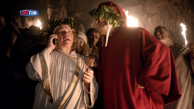 Come ogni coppia anche Dante, Neri Marcorè, e Beatrice, Bianca Balti, amoreggiano al telefono scambiandosi dolci effusioni. Ma nel girone infernale le anime soffrono ascoltando le affettuosità dei due innamorati e anche per la durata delle loro chiamate. Dante infatti ha Tutto a Secondi di TIM, quindi può telefonare per ore, tanto che chiede al suo compagno di viaggio Virgilio, Marco Marzocca, di dedicare una poesia alla sua amata. Tra le tante, a Virgilio verrà in mente quella sbagliata.
