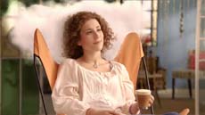 È una mattina serena e soleggiata: la donna esce sul terrazzo della sua casa per gustarsi il suo momento di relax con Nescafé Cappuccino ma c’è qualcosa che la disturba: si affaccia al balcone e per strada un operaio sta lavorando rumorosamente. La donna usa come bacchetta magica il cucchiaino e solleva la cupola del monumento che ha di fronte per attutire il rumore che prima disturbava il suo momento di piacere. Soddisfatta, si mette comoda sulla sua sdraio, ma ancora qualcosa non va: un raggio di sole abbaglia il suo sguardo, quindi con il suo cucchiaino sposta il campanile per farsi ombra. Per star ancor più comoda, prende in prestito dal cielo una nuvola che utilizza come fosse un soffice cuscino su cui poggiare la testa.